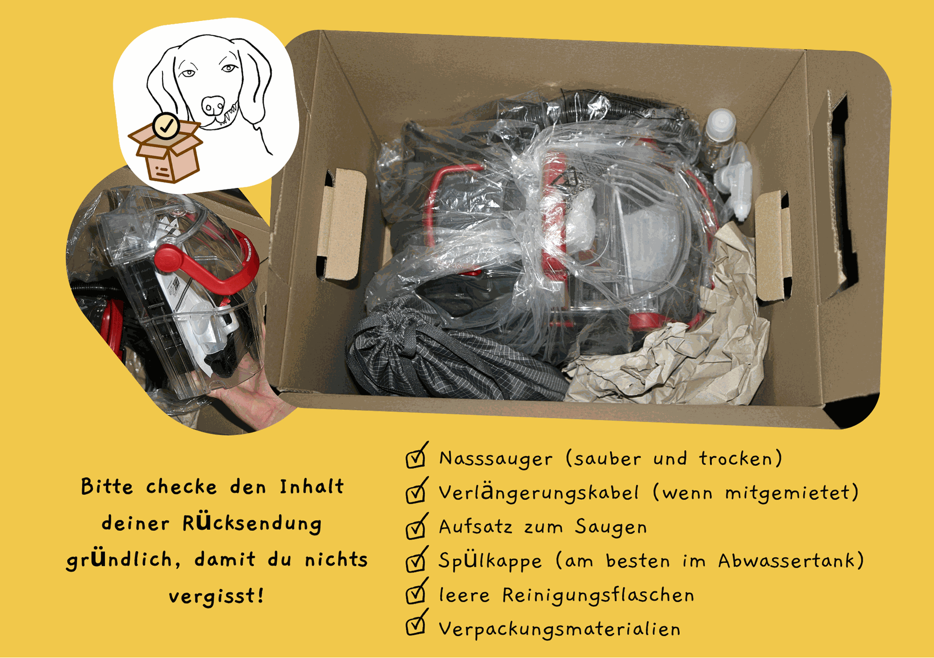Ein Mietgerät sauber zurückzugeben kostet dich maximal 10 Minuten, spart dir aber Stress bei der Abgabe und hält die Geräte für alle top in Schuss. So hat die nächste Person genauso viel Freude am Reinigen wie du.