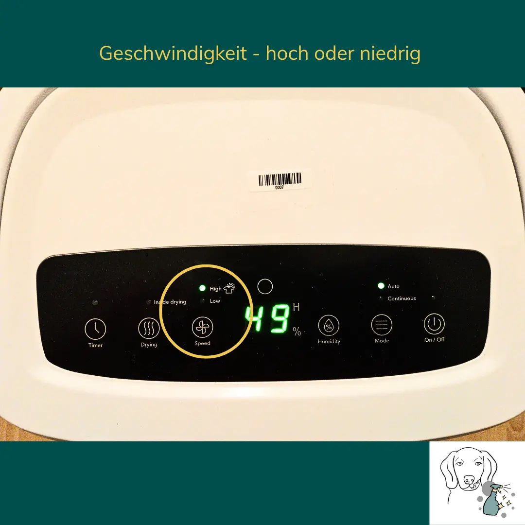 Drücke die Taste Speed, um zwischen niedriger Geschwindigkeit (low) und hoher Geschwindigkeit (high) zu entscheiden.