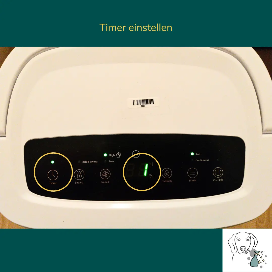 Der Modus dauert ca. 50 Minuten, das Gerät schaltet sich danach automatisch aus. Der Kondensatbehälter muss trotzdem seperat getrocknet werden.