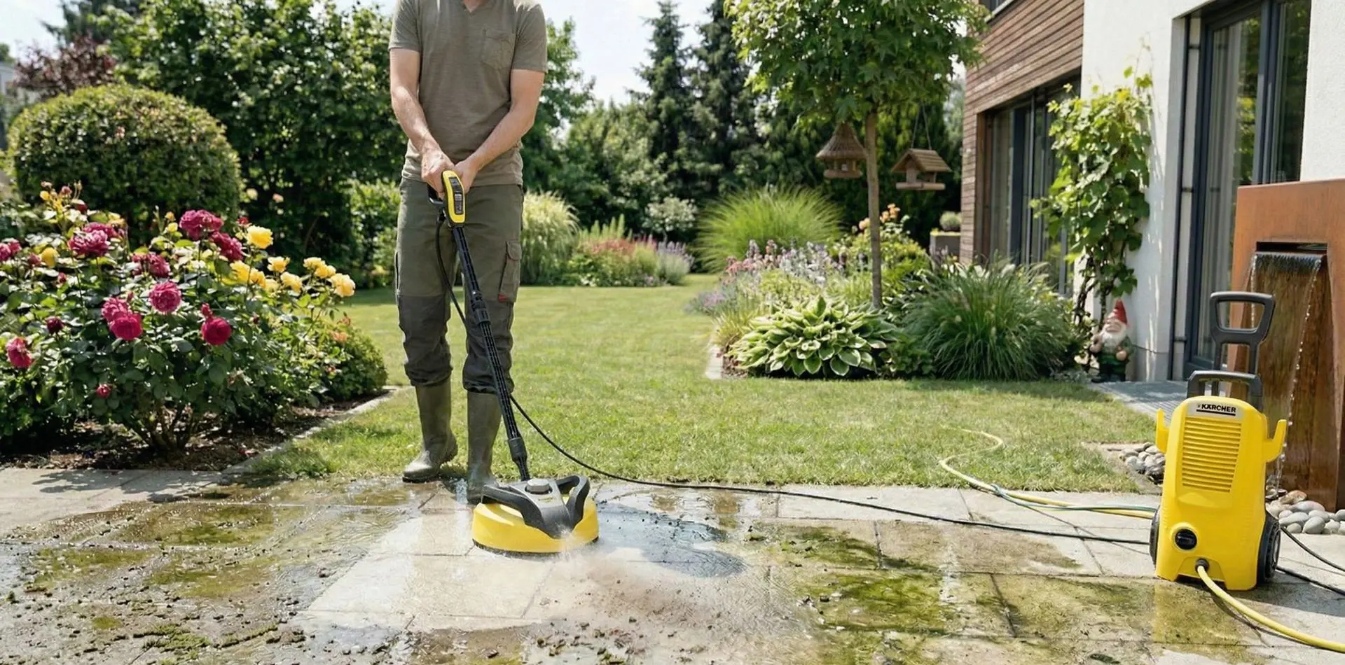 Dieser Aufsatz ist ideal für größere, ebene Flächen wie Terrassen oder Hofeinfahrten. Er reinigt spritzfrei, sodass die Wände und du selbst trocken bleiben.