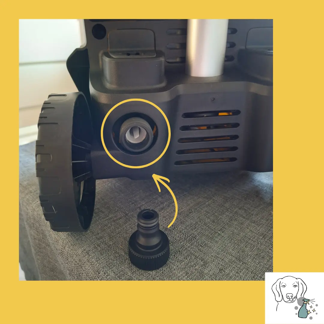 Auf den Anschluss wird der Adapter aufgedreht, um mit deinem eigenen Wasserschlauch an deinen Hauswasseranschluss (Garten) angeschlossen werden zu können. Hahn komplett aufdrehen.