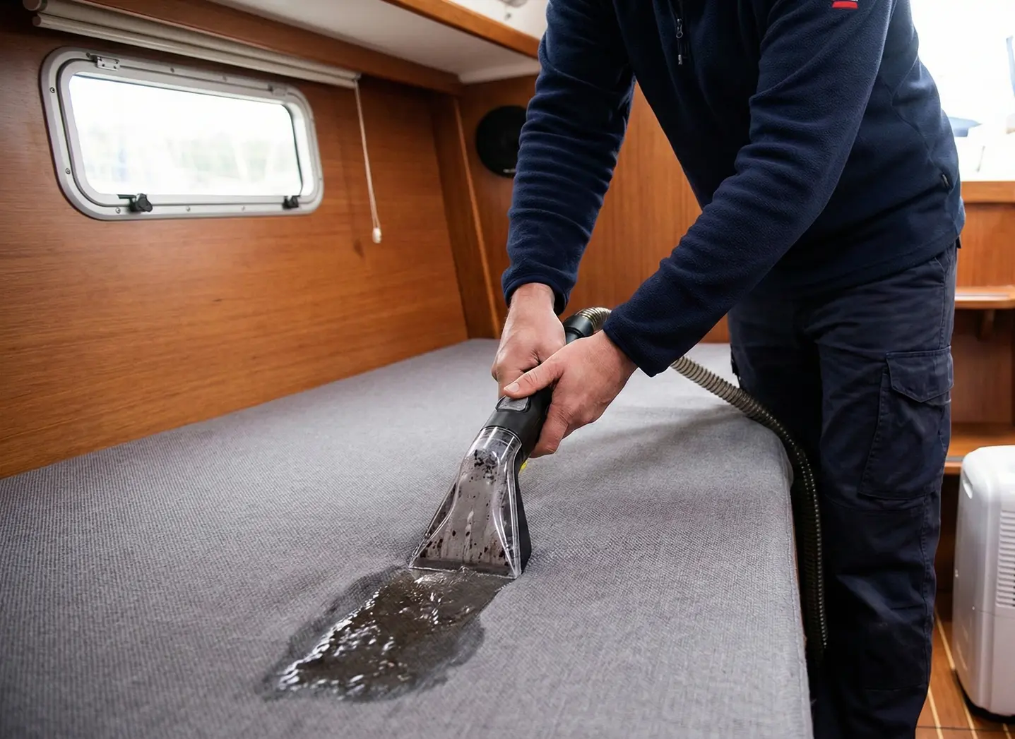 Vor der Nutzung sollte der Akku vollständig geladen werden. Prüfe, ob die Behälter korrekt eingesetzt sind und befülle den Frischwasserbehälter mit Wasser. Teste die Reinigung an einer unauffälligen Stelle, um sicherzustellen, dass das Material farbecht ist.