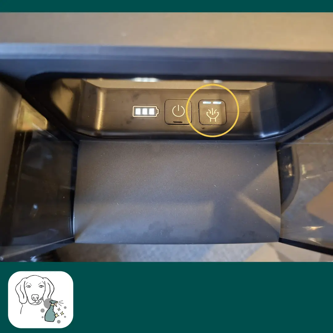 Leuchtet ein Strich ist der normale Modus aktiv (Akku hält ca. 35 Minuten). Leuchten beide Striche saugt der Nasssauger stärker (Akku hält ca. 20 Minuten).