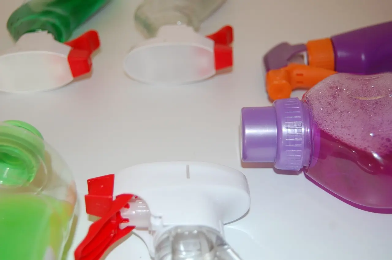 - Reiniger (mitgeliefert) in Flasche verdünnen, Reiniger aufsprühen und 3 min einwirken lassen.