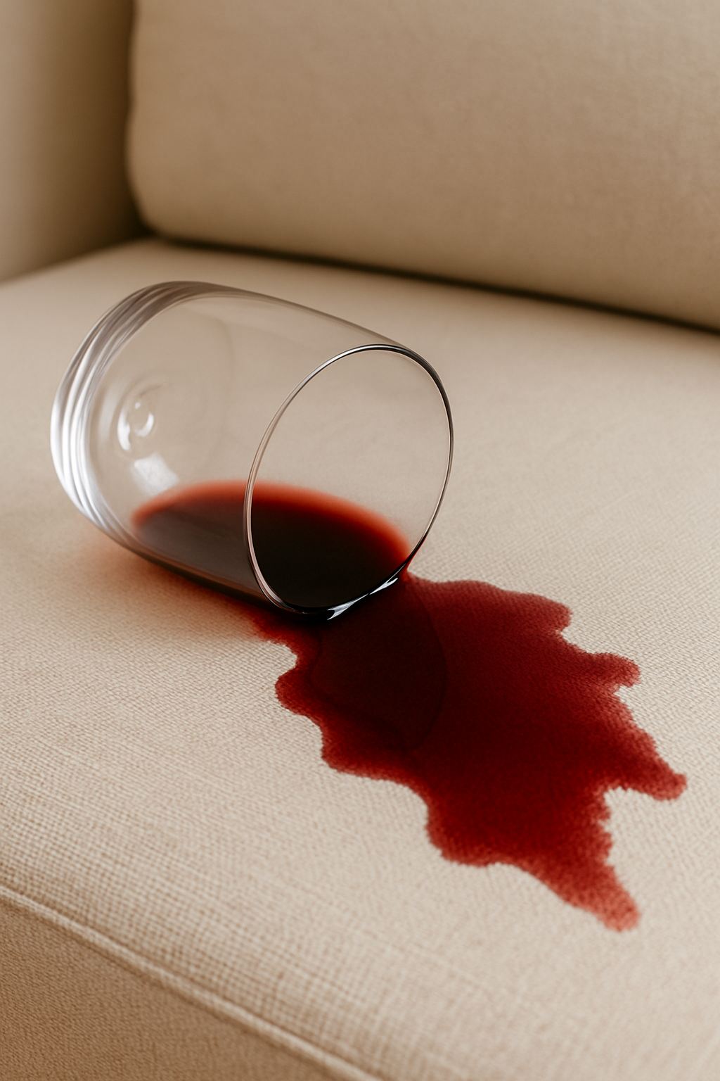 Szenario: Du willst den Abend genießen, das Glas kippt. Der Rotwein landet natürlich direkt auf dem hellen Stoffsofa.