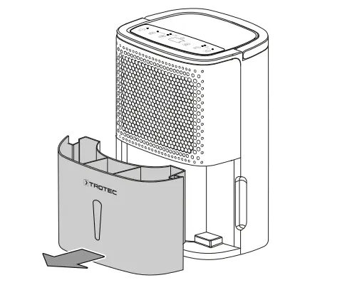 Ist der Kondensatbehälter voll oder nicht richtig eingesetzt, stoppt das Gerät automatisch.