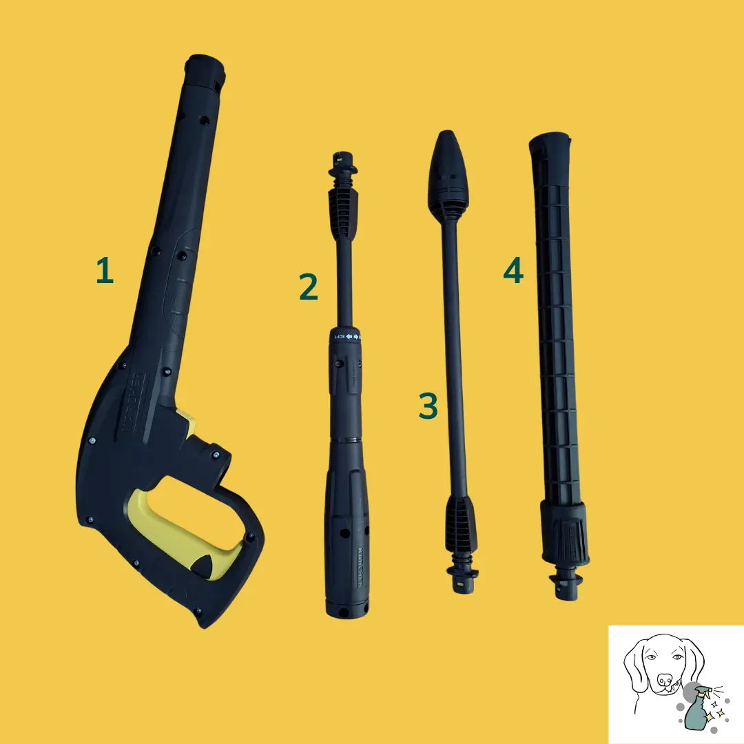 4 Das Verlängerungsrohr für den Anschluss des T5 Surface Cleaners ist ebenfalls an die Pistole zu montieren wenn du große Flächen reinigen möchtest.
